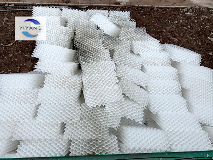 3、進(jìn)行蜂窩斜管填料的焊接:現(xiàn)場(chǎng)通電、場(chǎng)地寬敞、開(kāi)始進(jìn)行六角蜂窩斜管填料的焊接服務(wù),上一張斜管和下一張斜管接觸的部分用加熱的電烙鐵粘結(jié),熱接縫完成后,一個(gè)單元的蜂窩斜管為1m2。以此類(lèi)推將現(xiàn)場(chǎng)的蜂窩斜管填料焊接完畢,留部分備用,焊接陰角、陽(yáng)角。