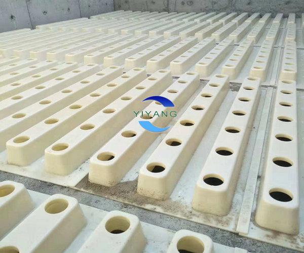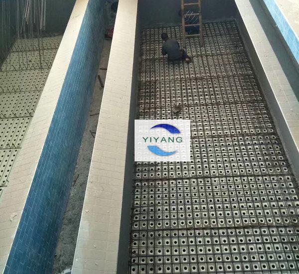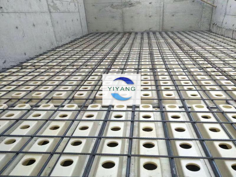 在濾池的槽梁濾梁建好之后,開始安裝ABS濾板,之后使用鋼筋在ABS濾板上方編成鋼筋網(wǎng),濾頭的桿體部分要按在ABS濾板上,擰上濾頭上配備的施工蓋,準(zhǔn)備工作完結(jié)之后,開始統(tǒng)一澆筑水泥,整體澆筑完之后,待水泥混凝土濾板完全凝固,去掉施工蓋,安裝ABS濾帽部分,完成濾板濾頭施工。